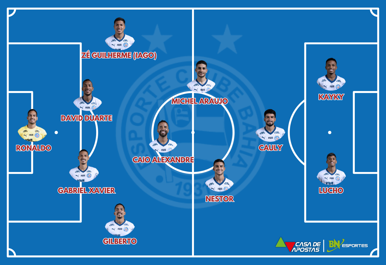 Bahia: Ronaldo; Gilberto, Gabriel Xavier, David Duarte e Zé Guilherme (Iago Borduchi); Caio Alexandre (Jota), Michel Araujo, Nestor e Cauly; Lucho e Kayky. Técnico: Rogério Ceni.